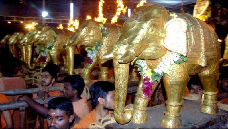 It features the ceremonial display of eight-and-a-half golden elephants offered to Lord Shiva.